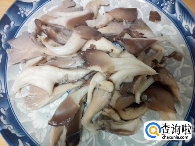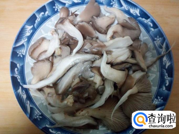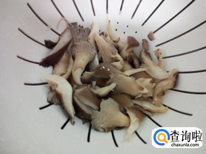 鲜蘑用手撕成片,用水清洗干净,控干水分。