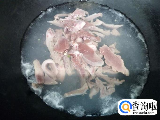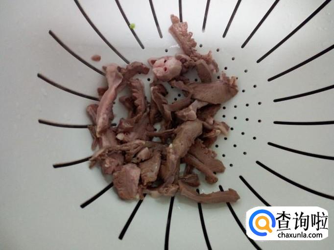 猪心用开水焯一下,水开后入锅10秒钟捞出,用水冲洗掉上面的血水和沫子,沥干水分。