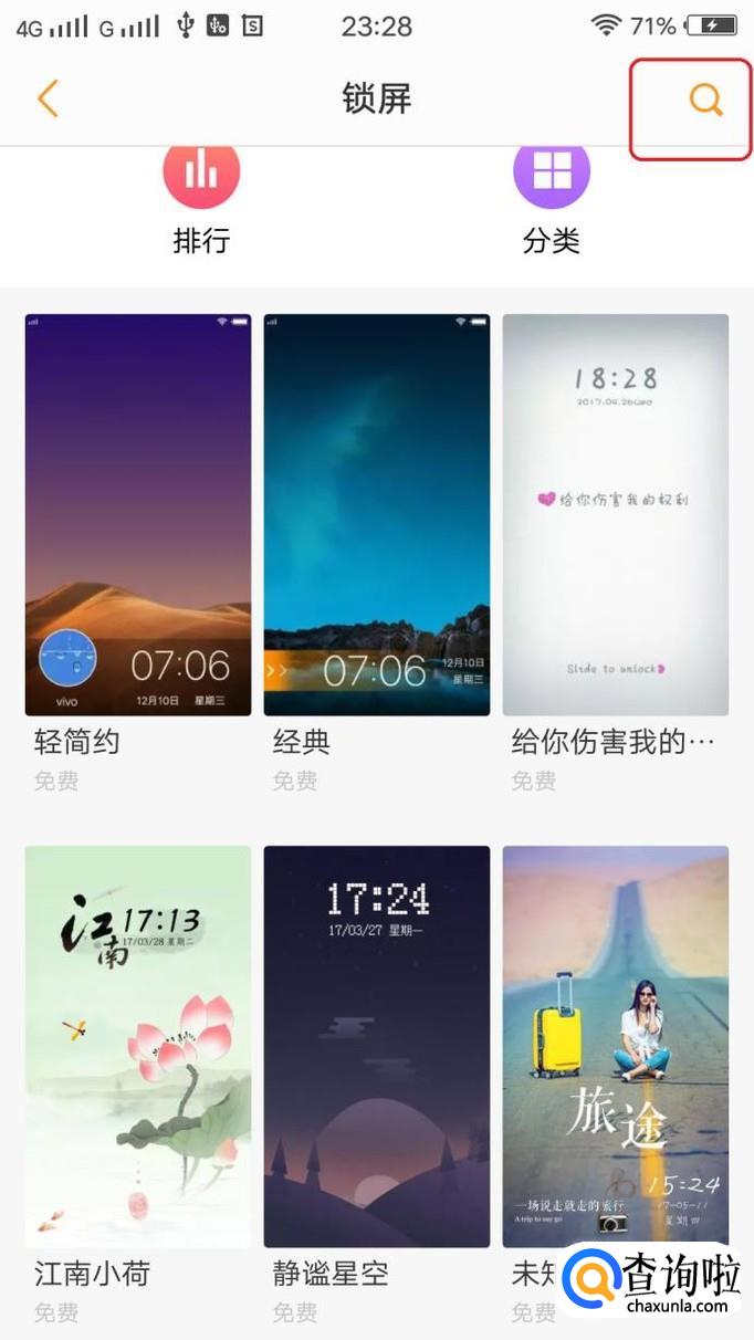 可以看到很多的锁屏壁纸,并且大多是免费的,如果还是觉得少,可以点击右上角搜索按钮。