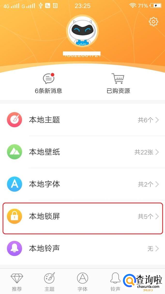 点击底部的“主题”,然后如图所示,点击“锁屏”。