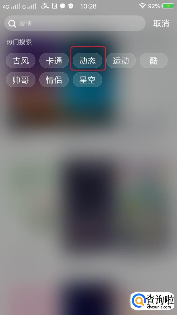 希望什么样的风格,输入内容搜索即可,假如我想设置一款动态壁纸,就点击搜索“动态”。