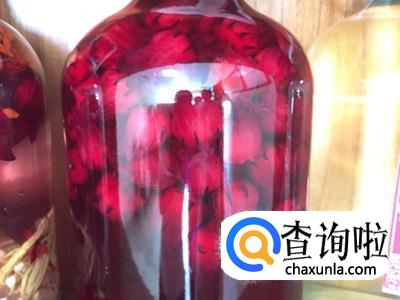 我们把晾好的花瓣放到瓶子里面,然后放冰糖,最后倒入高粱酒,封好瓶盖,找个地方放着。等一段时间后,我们再拿出来喝。