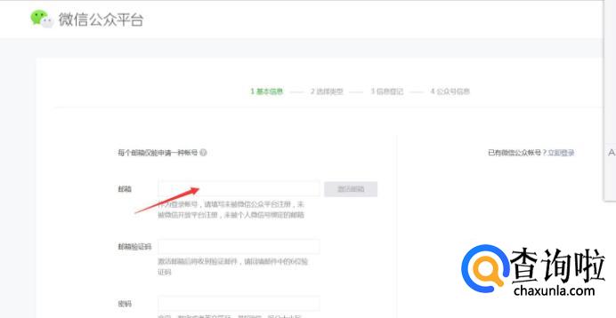 点击进入账号类型以后填写基本信息资料。