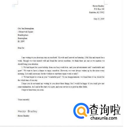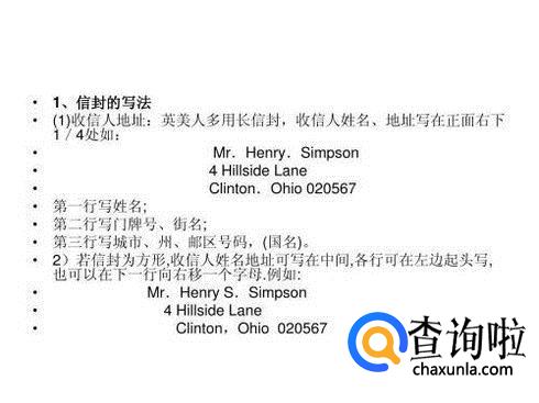 在写英文信件的时候还要注意的一个方面就是,它的地址信息和我们中国传统写地址信息不同,我们通常都是先写大范围再写小范围,如果要是英文的话,会先写街道这种小范围再写大范围。