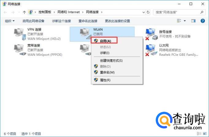 弹出的界面,我们右击我们被禁用的无线网络,弹出的界面,我们点击启用;