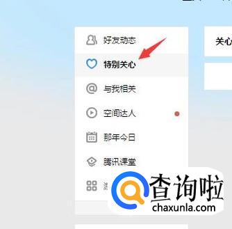 在qq空间的首页最左边会看到有一个特别关心的入口,点击一下。