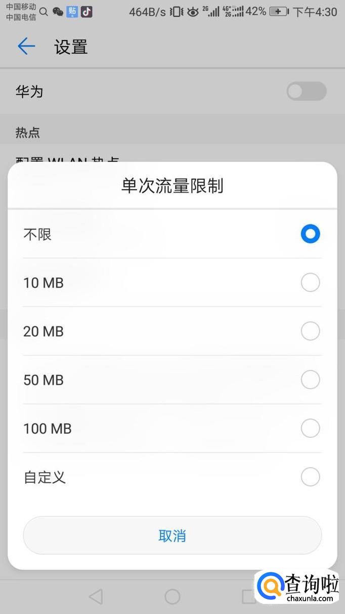 当我们把单次流量设置为不限后,手机热点就不会再因为流量达到限值时而自动关闭了。