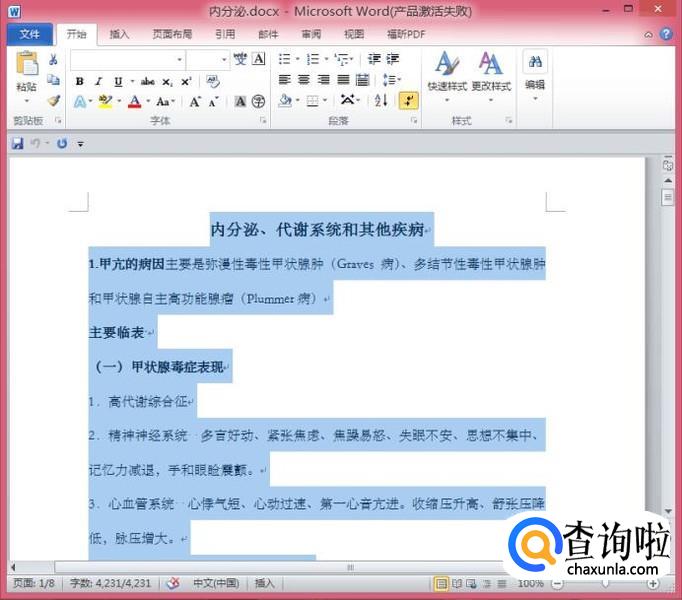 打开WORD文档,找到复习资料并打开(注意看一下我们现在的文档是有8页的哦)