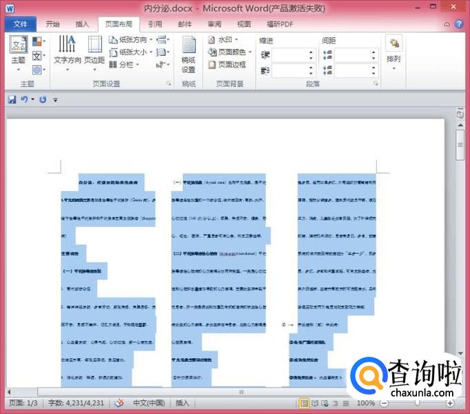 打开“页面布局”选项卡,找到“分栏”并打开下拉菜单(注意要在选择全文的状态下分栏哈)