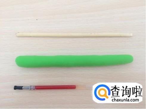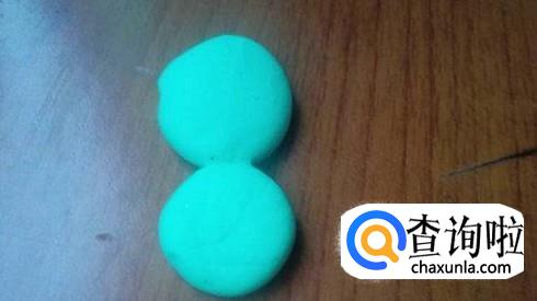 先取下一块绿色的粘土,捏成上小下大的“8”子形状。然后再取下一块白色的粘土放在绿色粘土上面。