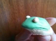 用白色的粘土捏成球状当做青蛙的眼睛放在头部的凹面,再在红色球状上放上一点黑色的粘土当做眼珠。