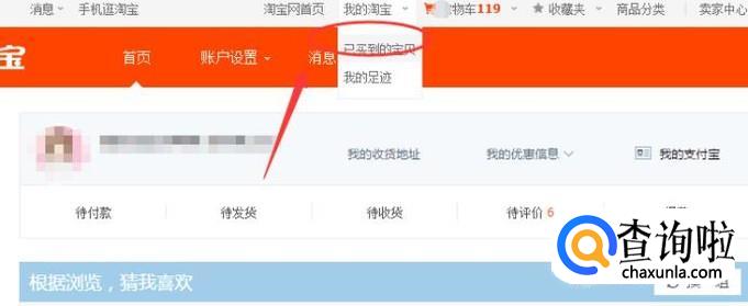 登陆之后,在【我的淘宝】下方,点击【已买到的宝贝】,如下图所示: