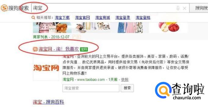 在浏览器中搜索淘宝,点击相关链接,如下图所示: