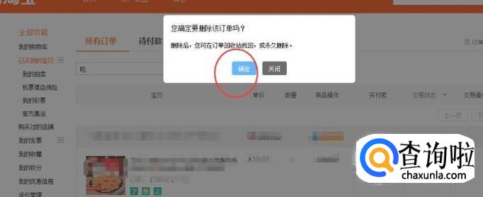 会弹出一个小窗口【您确定要删除该订单吗】,点击【确定】就可以删除了,如下图所示: