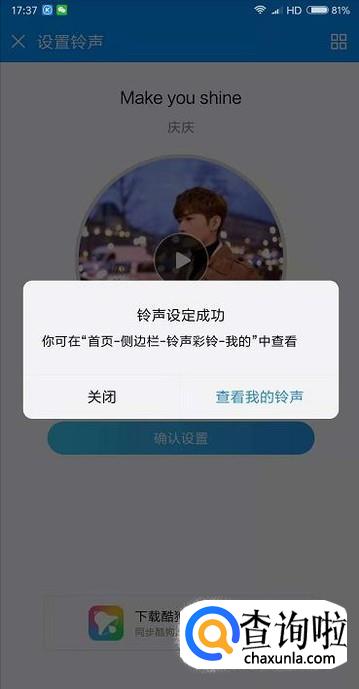 最后我们的铃声就设置成功了,点击查看我的铃声可以看到你设置过的所有铃声。