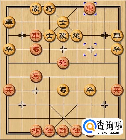红方车三平四,红方车在底线向左移动,强行杀掉了黑方炮,红方车将军。尽管红车将军,但红车位于黑方士口,等于是自寻死路。如图所示。