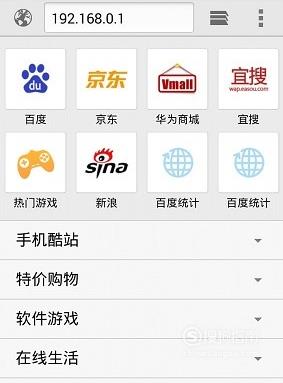 打开手机上的浏览器,在地址栏中输入:192.168.0.1打开设置界面。