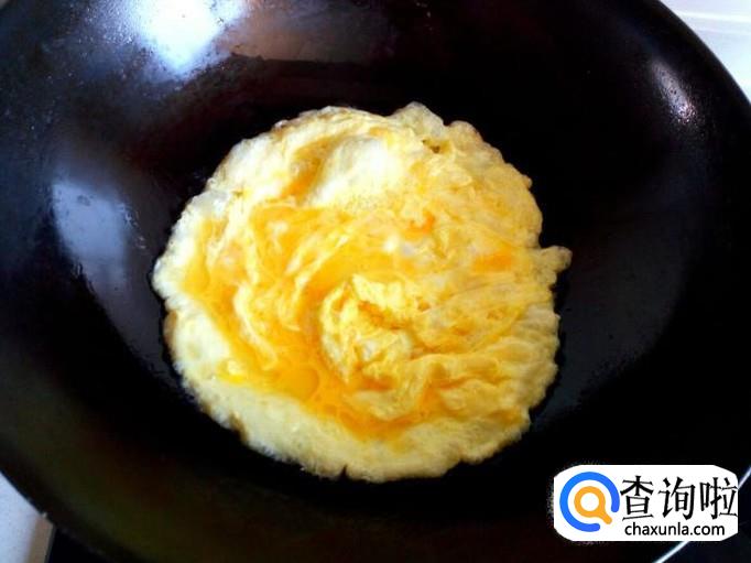 先用锅把鸡蛋炒出来,炒至七分熟,盛出备用。