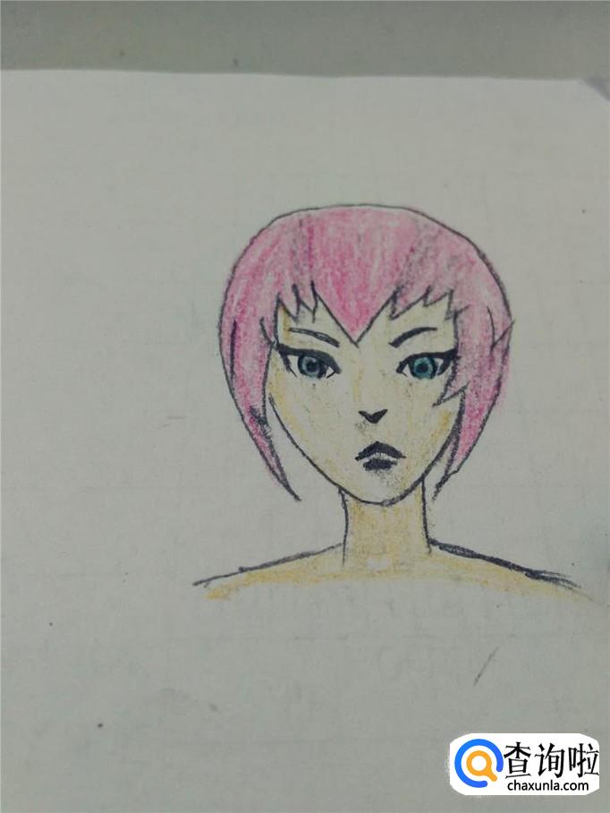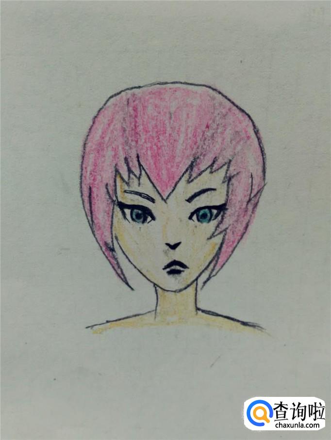 再用肉色涂脸、脖子和肩膀,漫画人物正脸就画完了,零基础的人只要按照这个方法画就可以了。