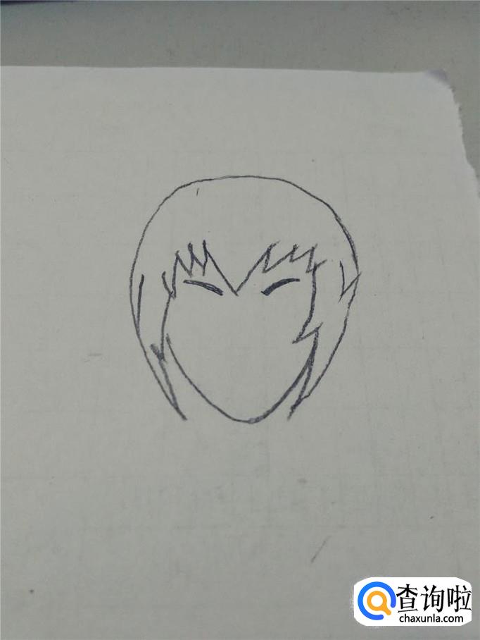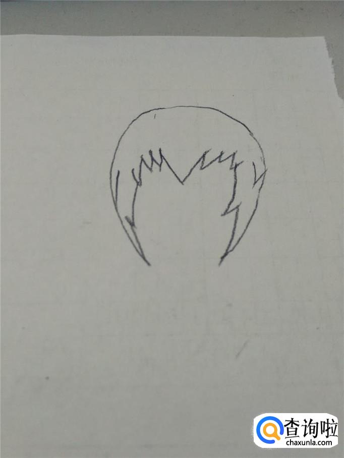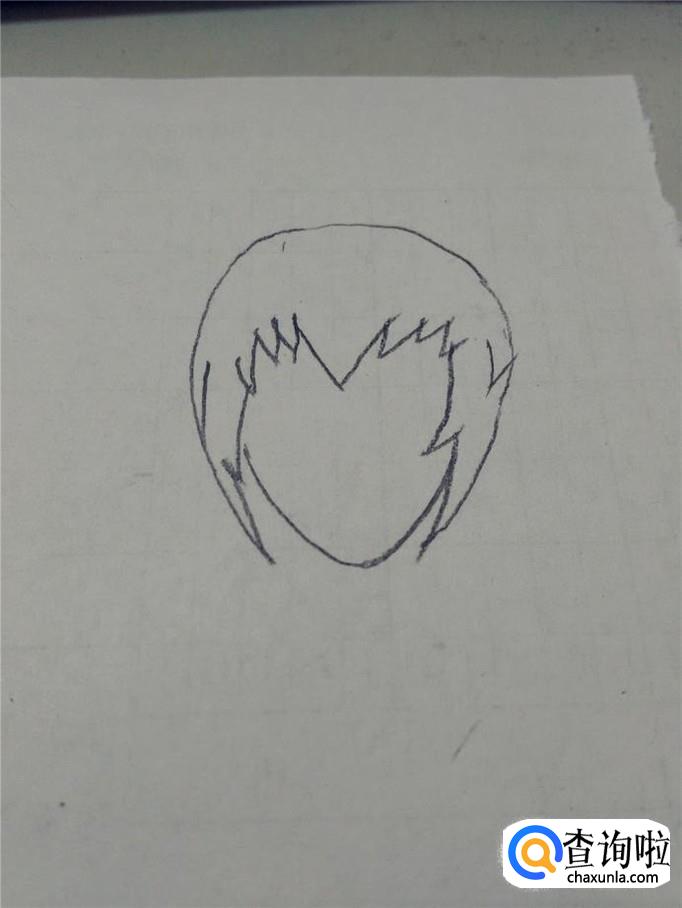 漫画人物,头发是主要的地方,所以先画头发,外侧画头发的轮廓,内侧画一些锯齿形状,表示一缕缕的头发。