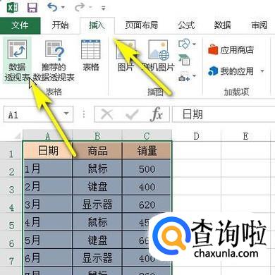 把表格全选中,再点开插入选项卡,在展开的内容中再点:数据透视表