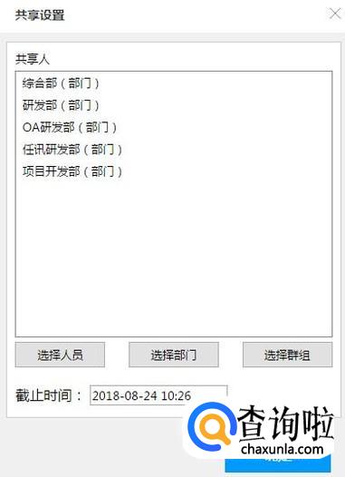 可以将我的文件分享给部门、群组、人员,可以设置共享截止时间。
