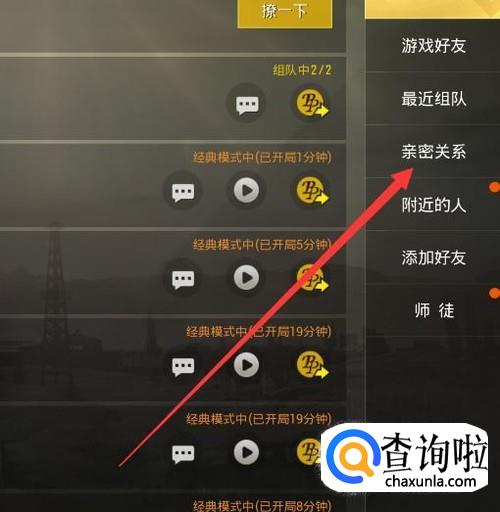 进入之后,点击“亲密关系”,进入下一页面,如图所示。