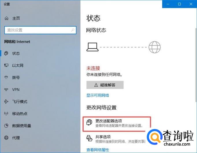 弹出的界面,我们点击更改适配器选项;