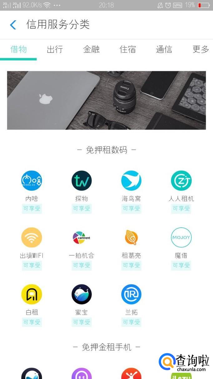 下面就是大家通过芝麻信用可以用的服务。