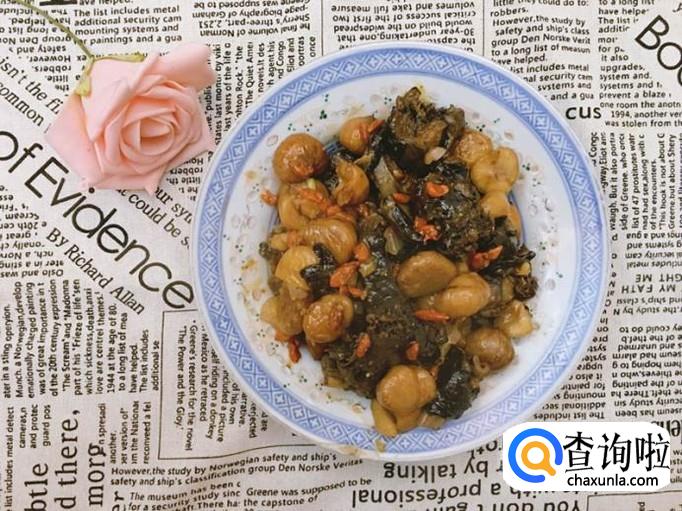 1,乌骨鸡半只 2,栗子200g 3,葱头3个 4,枸杞少许 5,盐少许 6,蚝油少许