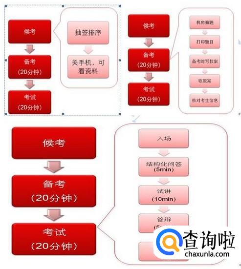 考生按照工作人员的引导进入指定面试室,考官从题库中随机抽取2个规定问题提问,要求考生回答,一般限时5分钟。
