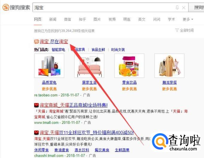 进入之后,搜索“淘宝”,点击并进入,如图所示。