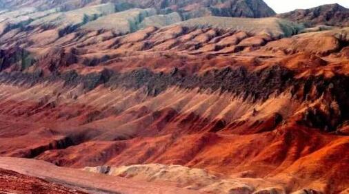 盆底艾丁湖水面,低于海平面154米,是中国最低的盆地,在世界上也仅次于低于海平面391米的约旦死海,为世界第二低地。鸟瞰吐鲁番盆地,可以清楚地看到,它以艾丁湖为中心,呈环状分布的地形,由三个环带组成。