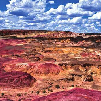 最外一环由高山雪岭组成,北面横亘着博格达山,高耸入云,终年白雪皑皑;南边有库鲁塔格山;西面有喀拉乌成山;东南有库姆塔格山;可谓四面群山环抱。盆地中环是长期以来山岭风化剥蚀,由流水搬运下来的戈壁砾石带。盆地的第三环带是最具生命力的、诱人的绿洲平原带。
