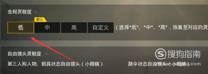 进入之后首先要设置的是,全局的灵敏度,调节为低,如下图。