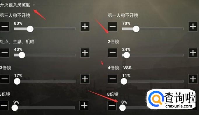 然后设置镜头的灵敏度,还有开火镜头的灵敏度,一般情况,设置的都差不多,一般不开镜灵敏度设置为百分之七十就可以了。