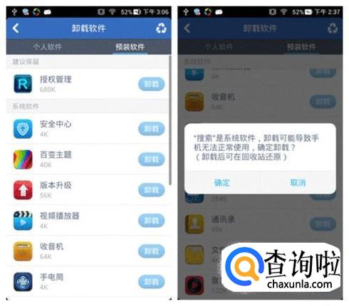 获取权限成功后,在一键root应用界面找到系统应用卸载