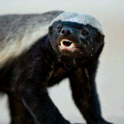 蜜獾又称平头哥,是鼬科蜜獾属下唯一一种动物!平均体长98厘米,雌性平均体长91厘米,雄性肩高39厘米,雌性肩高35厘米,雄性体重9-14千克,雌性体重5-10千克。背部为灰色。它的皮毛松弛而且非常粗糙,体型和獾的体型相当,其寿命可达24岁。因视死如归的精神,被吉尼斯世界纪录以"世界上最无所畏惧的动物"收录。