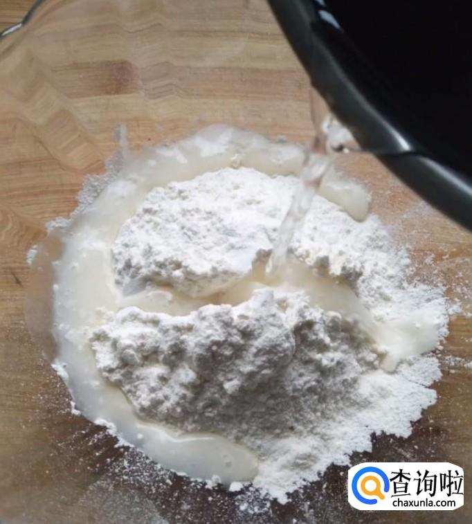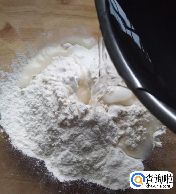 首先我们将面粉倒入碗中,倒入适量的清水,揉成面团
