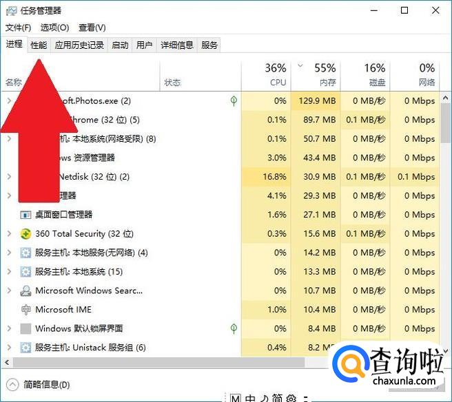 进入“任务管理器”界面后,点击进入“性能”选项卡。