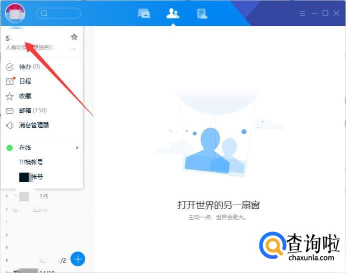 在出现的弹窗位置,点击自己的昵称,如图所示。