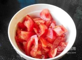 将番茄已经切成小方块,将鸡蛋打入碗中备用。