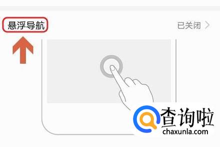 在跳转到的系统导航页面,我们可看到“悬浮导航”演示图了,点击进去以后将开关打开即可;