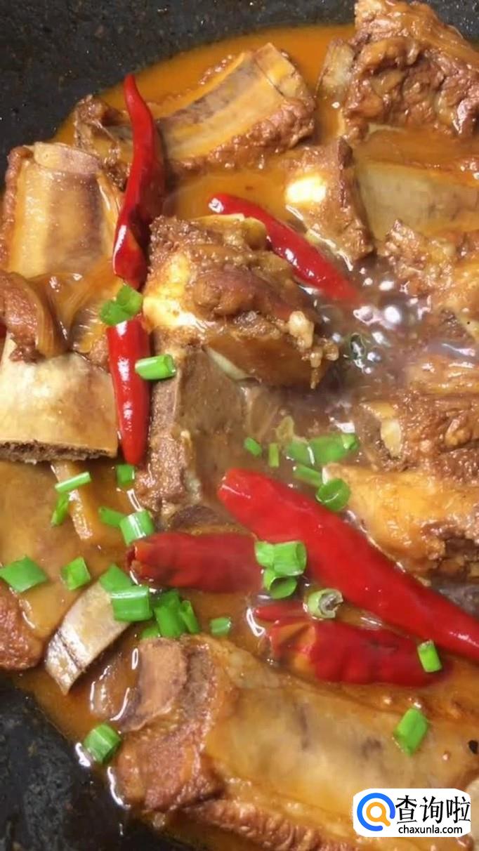 等到锅中的水份所剩无几,撒上葱花就可以出锅了。一道美味可口的红烧排骨就做好了,希望大家能够喜欢。