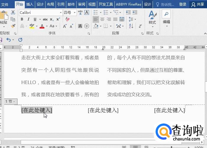 首先我们将页面分栏好,在页码处双击,进入“页眉页脚编辑”状态,点击【插入】-【页眉页脚】-【页脚】,选择空白(三栏)的样式。