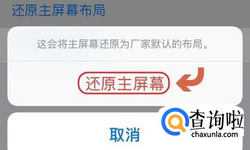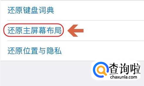 在通用界面的最下方有一项“还原”,点击以后在所有还原选项中点击“还原主屏幕布局”;
