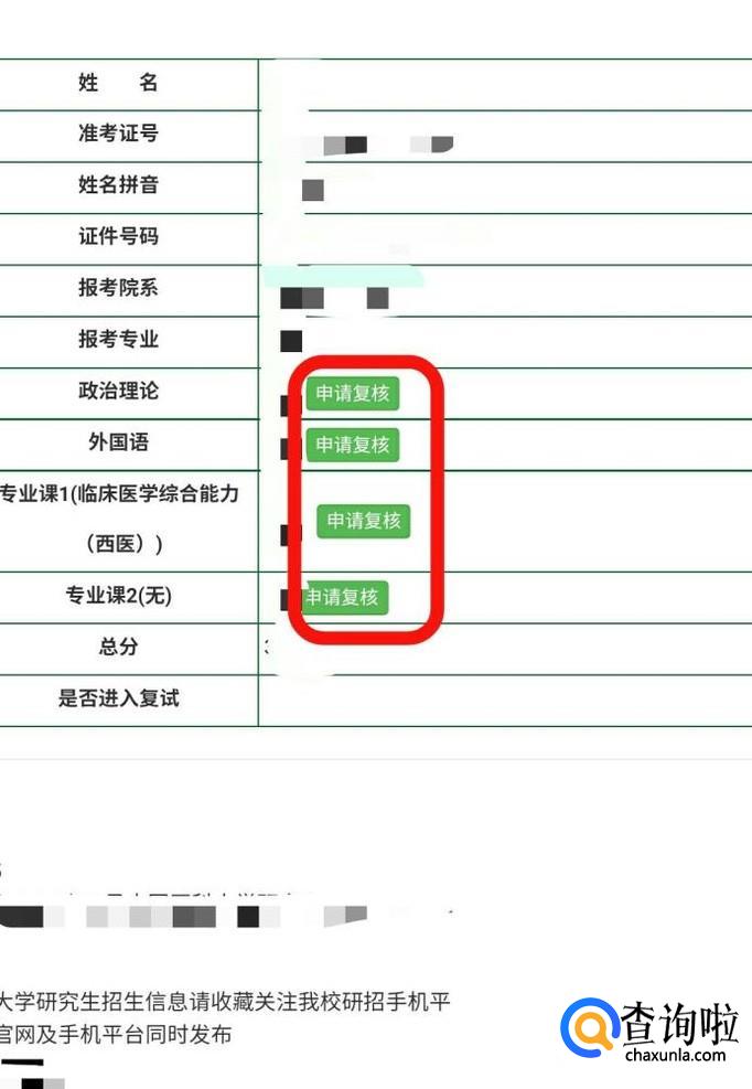 分数出了以后在分数的旁边有一个申请复核的绿色按钮。想要复合哪一门的成绩,就可以点击申请复核就可以了。