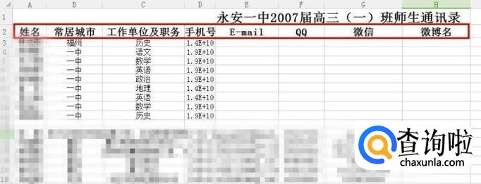 接着根据班级成员或者是公司成员相关信息进行填写,如下图所示。