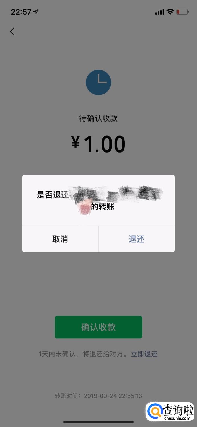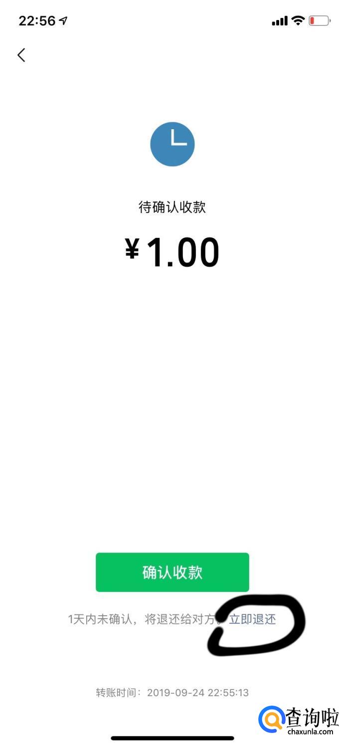 还有一个方法就是,你在收到对方的转账消息24小时内没有点击确认收款,系统将自动退还。