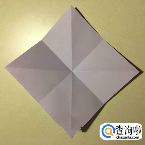 纸张应自然折叠成菱形,左侧有两个角,右侧有两个角。